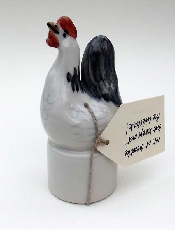 These are sculptural pieces designed to sit on top of a bottle of red wine after the cork has been removed to allow the wine to breathe. The wine breathes but the pesky little fruit flies can’t get in to ruin it.
