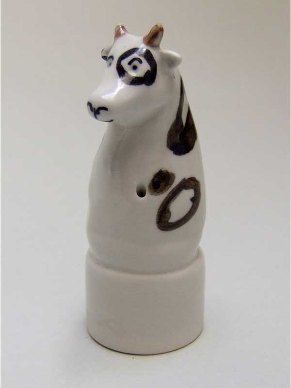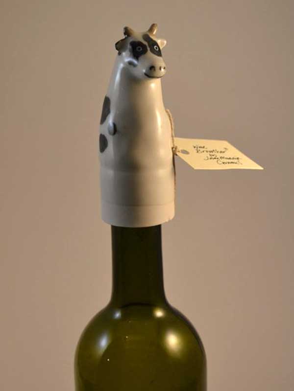This Cow is part of my range of Winebreathers. These are sculptural pieces designed to sit on top of a bottle of red wine after the cork has been removed to allow the wine to breathe. The wine breathes but the pesky little fruit flies can’t get in to ruin it.This can also be used as a wine bottle cap if half the bottle is left ! Each one is hand decorated by my illustrator husband Kevin Maddison, so each one is slightly different and original, a collectable item.