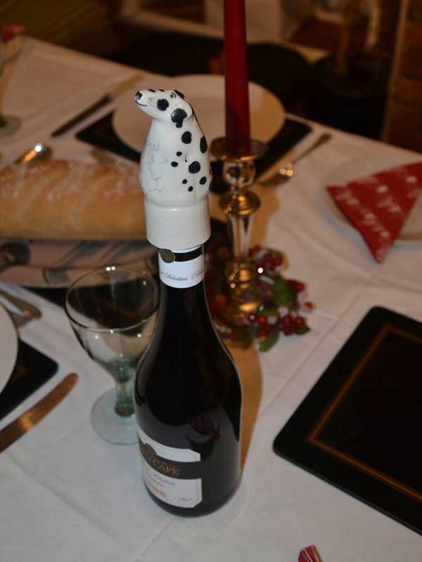 This Dalmatian is a new member of my range of Wine Breathers. These are sculptural pieces designed to sit on top of a bottle of red wine after the cork has been removed to allow the wine to breathe. The wine breathes but the pesky little fruit flies can’t get in to ruin it. This can also be used as a wine bottle cap if any wine is left ! Each one is hand decorated by my Illustrator husband Kevin Maddison, so each one is slightly different and original, a collectible item.