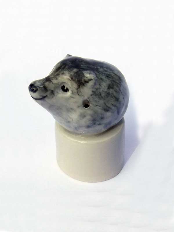 This lovely Hedgehog is part of my range of Winebreathers. These are sculptural pieces designed to sit on top of a bottle of red wine after the cork has been removed to allow the wine to breathe. The wine breathes but the pesky little fruit flies can’t get in to ruin it.This can also be used as a wine bottle cap if half the bottle is left !Each one is hand decorated by my illustrator husband Kevin Maddison, so each one is slightly different and original, a collectable item.