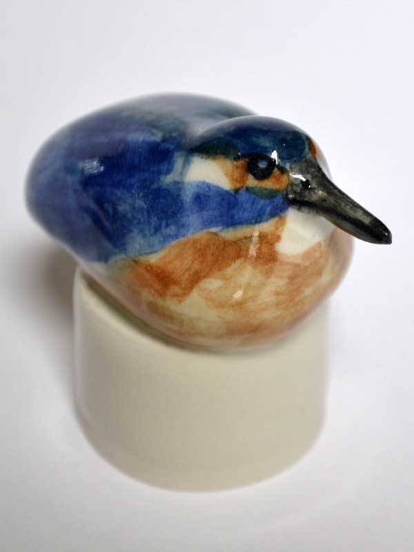 This lovely Kingfisher is part of my Winebreather range. These are sculptural pieces designed to sit on top of a bottle of red wine after the cork has been removed to allow the wine to breathe. The wine breathes but the pesky little fruit flies can’t get in to ruin it. This can also be used as a wine bottle cap if half the bottle is left !Each one is hand decorated by my illustrator husband Kevin Maddison, so each one is slightly different and original, a collectible item.
