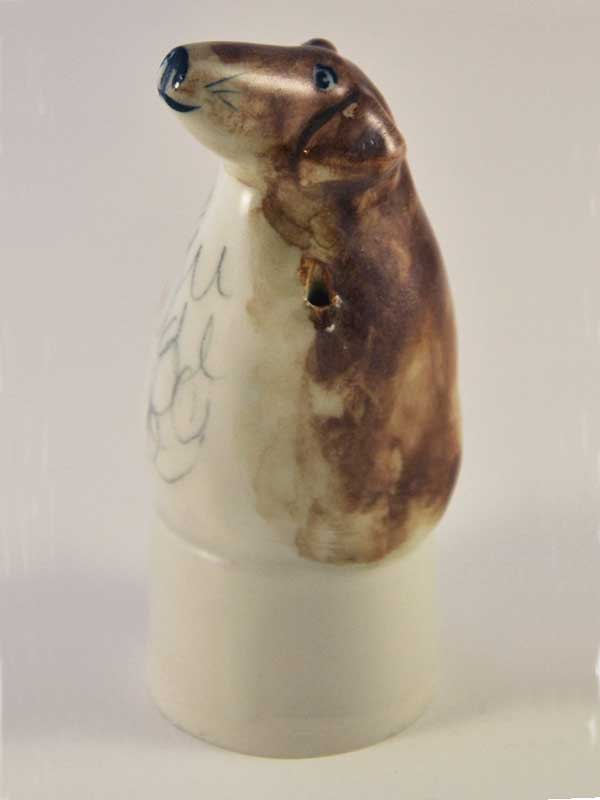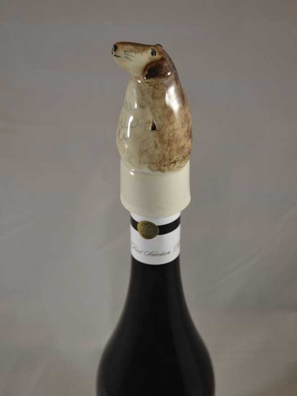 This Chocolate Labrador is a new member of my range of Wine Breathers. These are sculptural pieces designed to sit on top of a bottle of red wine after the cork has been removed to allow the wine to breathe. The wine breathes but the pesky little fruit flies can’t get in to ruin it. This can also be used as a wine bottle cap if any wine is left ! Each one is hand decorated by my Illustrator husband Kevin Maddison,