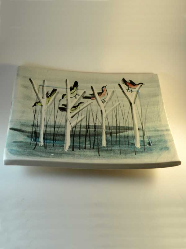 Hand rolled and decorated medium-sized platter, measuring approx 23 x 18 cm